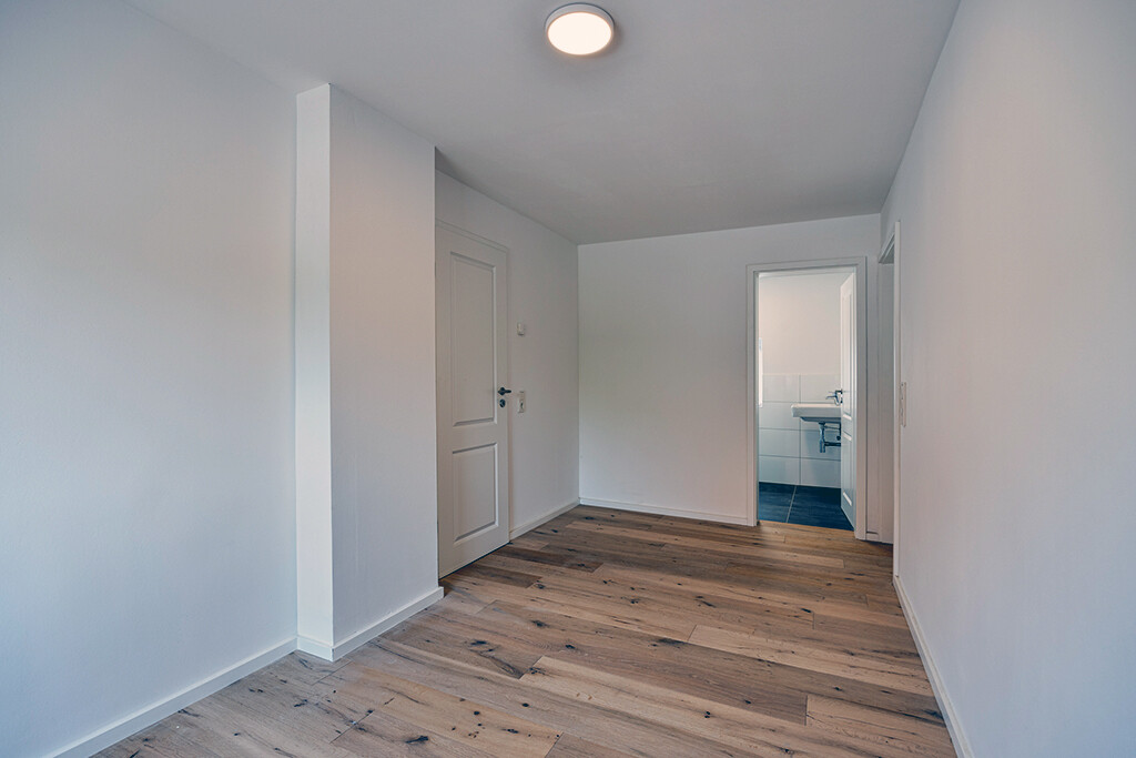 - Wände verputzt, gespachtelt und Vliestapete