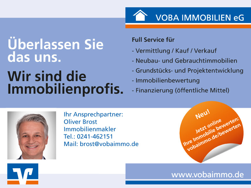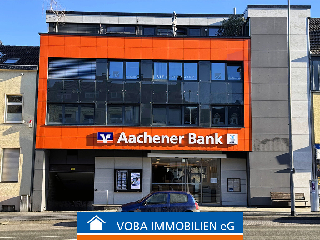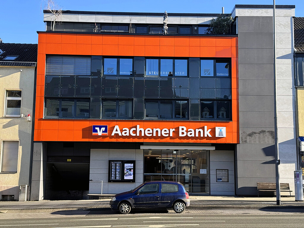 Die hier angebotene Fläche befindet sich im 1. Obergeschoss eines Stadthauses (oberhalb der Geschäftsstelle der Aachener Bank). Der Zugang erfolgt sowohl über das Treppenhaus als auch über eine Aufzugsanlage. Das Objekt steht auf einem ca. 1.141 m² großen Grundstück direkt an einer Hauptstraße und bietet eine hervorragende Sichtbarkeit.