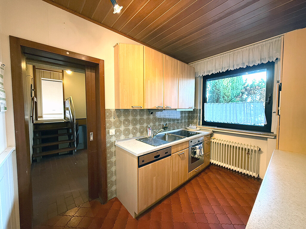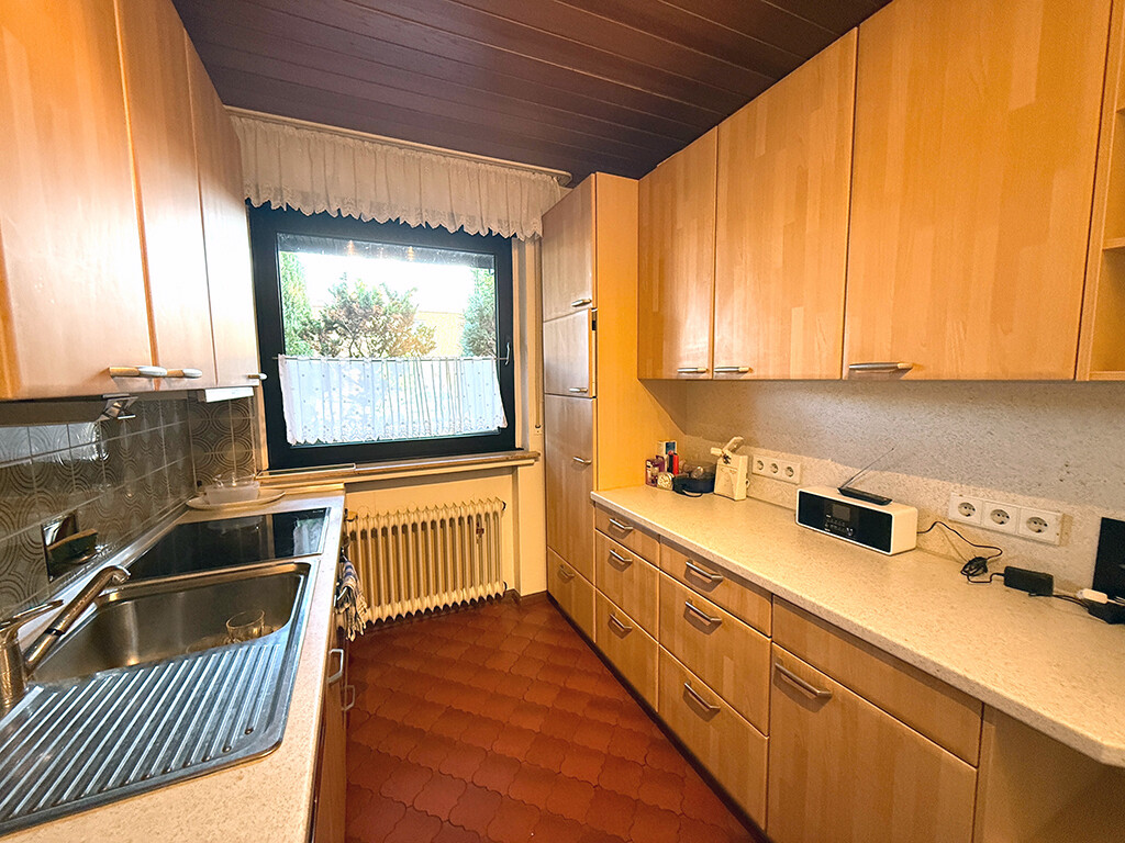 Im Erdgeschoss befinden sich die Küche, ein Gäste-WC sowie ein großzügiges Wohn- und Esszimmer mit Zugang zur Terrasse. Für angenehme Temperaturen in den Sommermonaten sorgt eine nachgerüstete Klimaanlage (2019) im Wohn- und Esszimmer.