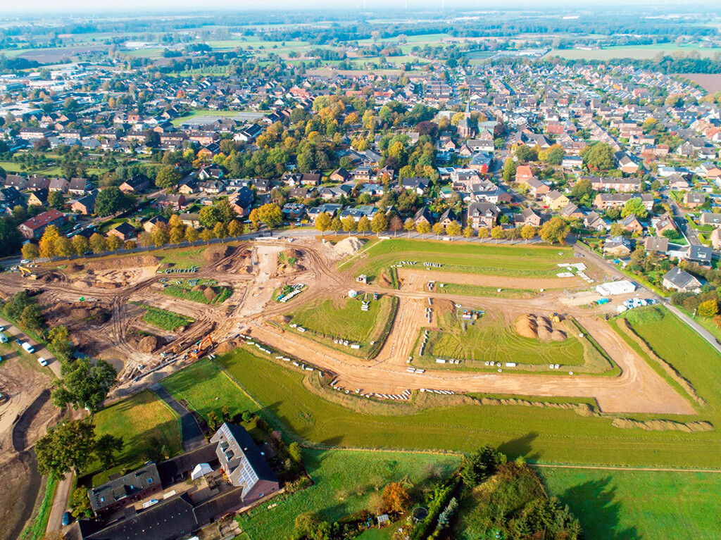 Bereits vor einigen Jahren wurden die umfangreichen Planungen für das neue Wohngebiet „Im Lüßfeld“ im beliebten Gelderner Ortsteil Veert in die Wege geleitet. Herausgekommen ist eine aufgelockerte städtebauliche Entwicklung, die das Zusammenleben von Jung und Alt ermöglicht und die vorhandene Lücke zwischen dem Hülspassweg, der Grunewaldstraße und der Bebauung „Im Petersfeld“ perfekt schließt.Existierende Strukturen, wie der Dreihöfeweg oder verschiedene Radfahr- und Spazierwege zum Veerter Sportgelände, wurden in die Planung integriert.