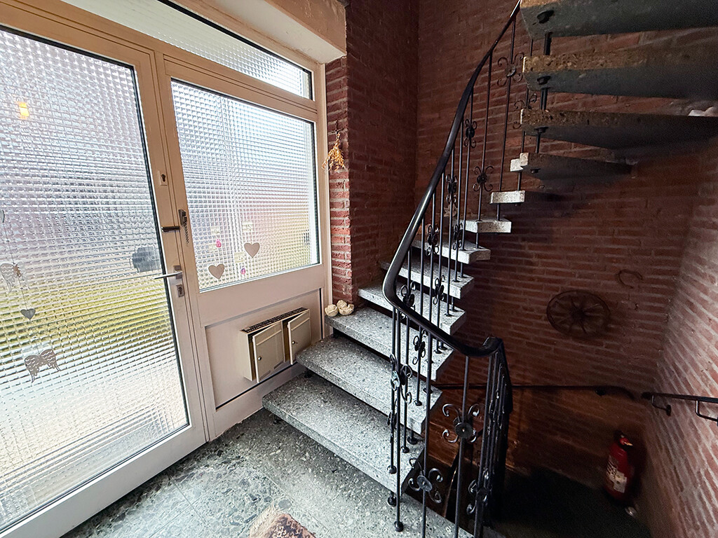 Die obere Wohnung verfügt über zwei Balkone, die sowohl vom Flur als auch vom Wohnzimmer aus zugänglich sind und zusätzliche Freiräume schaffen.