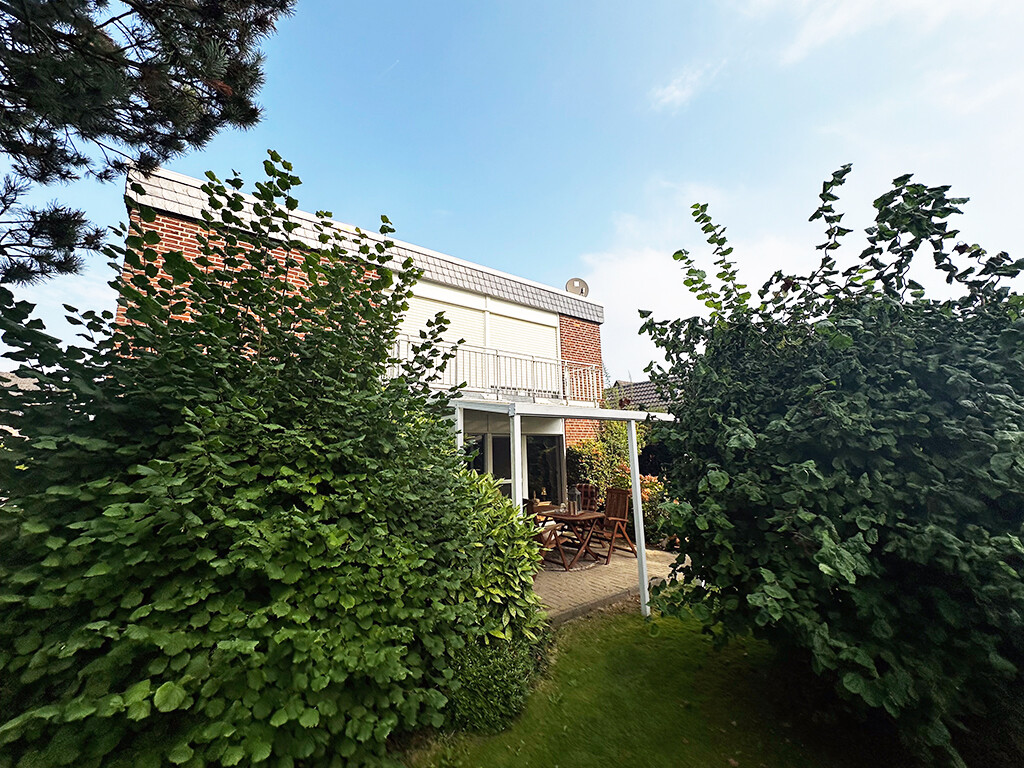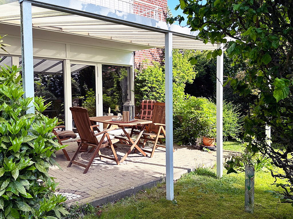 Ein besonderes Highlight ist die großzügige, überdachte Südterrasse, die einen geschützten Platz zum Entspannen und Verweilen bietet. Der schön angelegte Garten wurde liebevoll gestaltet und hat ausreichend Platz zum Spielen, Gärtnern oder Erholen.