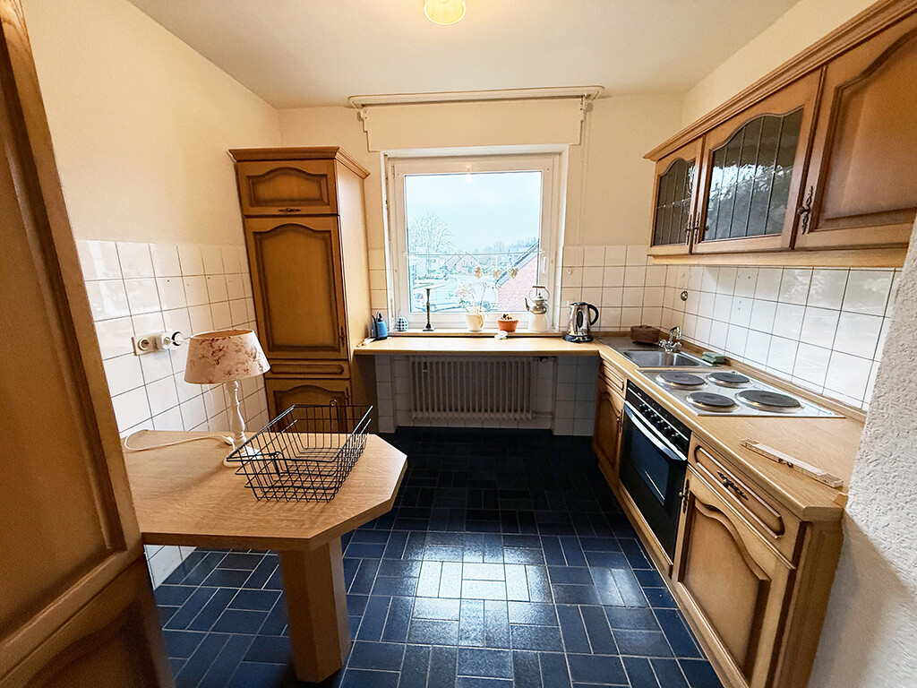 Wohneinheit II (Obergeschoss): Wohn- und Esszimmer mit angrenzender offner Küche, Schlafzimmer, Büro (respektive Gästezimmer), Flur, Bad (mit Wanne)