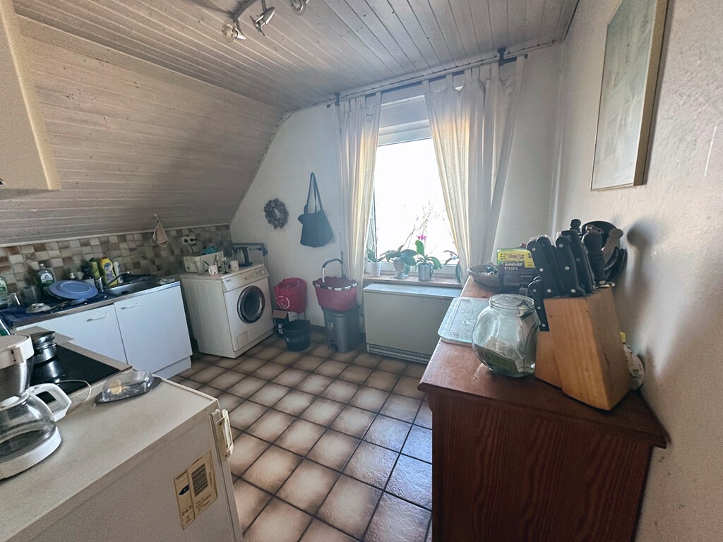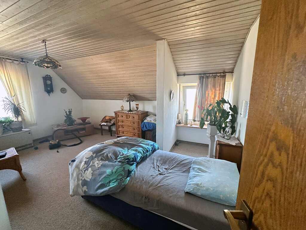 Dachgeschoss (vorne, vermietet, Wohnfläche ca. 47 m²): Separater Eingangsbereich, Wohnzimmer, Schlafzimmer, Küche, Bad - Eine Raumspartreppe führt auf den Speicher, ideal zum Lagern und Abstellen. Die Jahresmieteinnahme beträgt ca. 5.400,00 € zzgl. Nebenkosten.