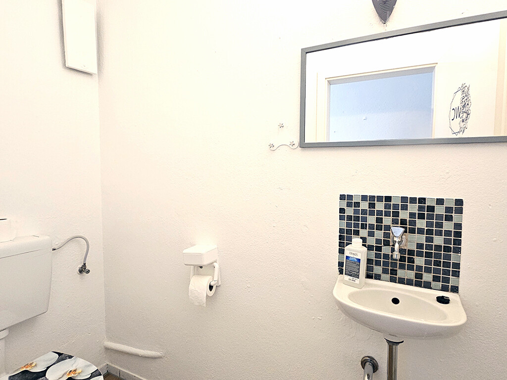 Aufteilung: Wohnzimmer, Elternschlafzimmer, Kinderzimmer (respektive Büro), Küche, Diele, Bad, Gäste-WC