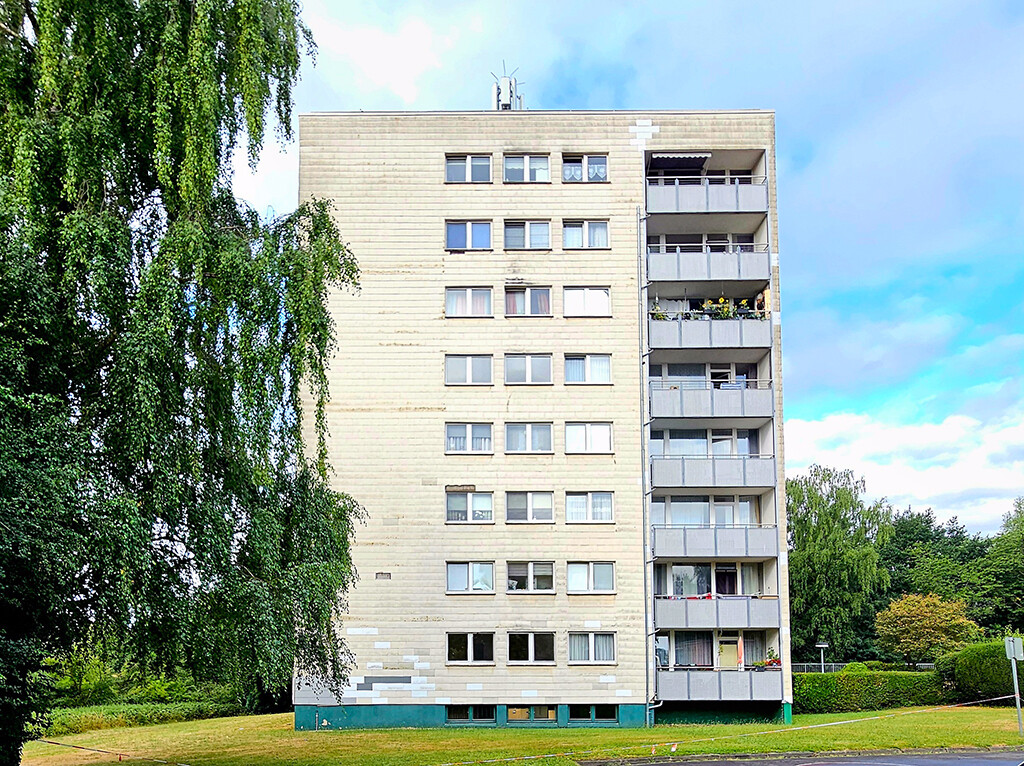 Diese allgemein gepflegte Dreizimmerwohnung in ruhiger Lage von Hückelhoven befindet sich im Erdgeschoss (Hochparterre) eines Mehrfamilienhauses. Vom großen Balkon in Südlage aus genießen Sie den Blick über Bäume und Felder.