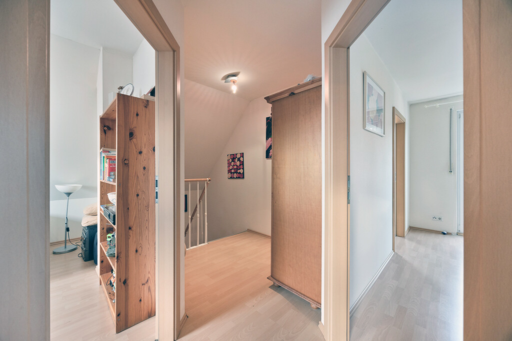Zusätzliche praktische Stau- und Nutzflächen bieten der Spitzboden (über Auszugstreppe begehbar; in der oben angegebenen Wohnfläche nicht enthalten) und die Garage.