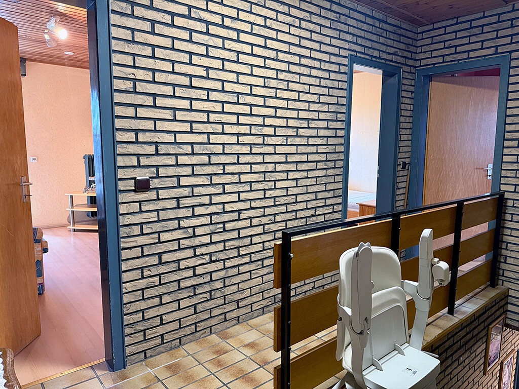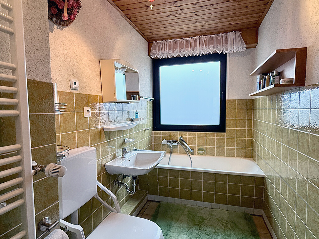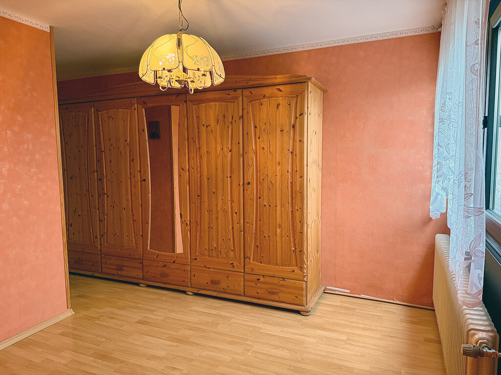 Das Obergeschoss bietet drei individuell nutzbare Zimmer (Schlaf-, Kinder-, Gäste- oder Arbeitszimmer) sowie ein Bad. In den Zimmern ist Laminatboden verlegt, das Bad und der Flur sind gefliest. Von einem der Zimmer aus gelangen Sie auf den Balkon, der sich über die gesamte Hausbreite erstreckt.