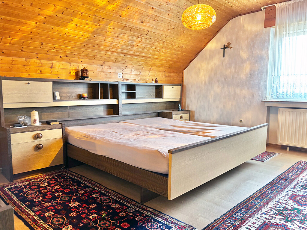 Dachgeschoss: Elternschlafzimmer, Kinderzimmer I, Kinderzimmer II (respektive Büro), Flur (mit Zugang zum Boden), Bad (mit Wanne und Dusche), Abstellraum