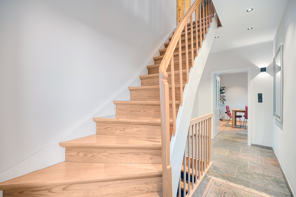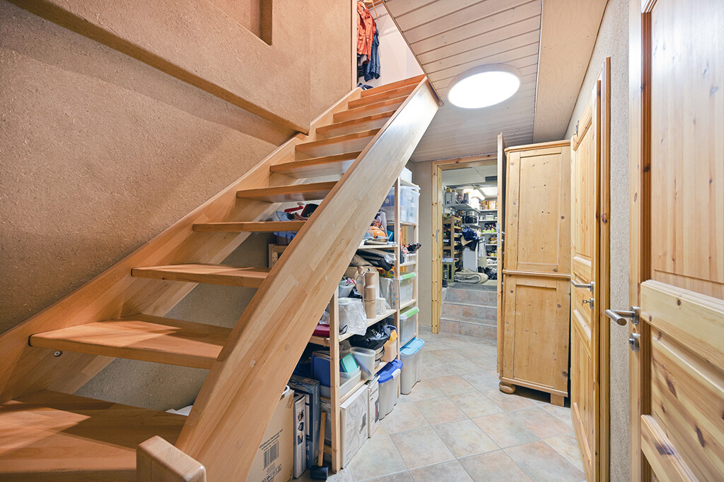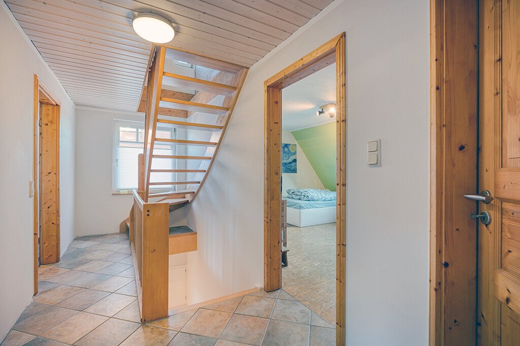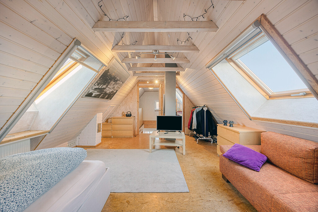 Darüber hinaus wurde in dem über eine fest installierte Holztreppe begehbaren Spitzboden ein weiterer Raum mit ca. 30 m² Nutzfläche geschaffen.