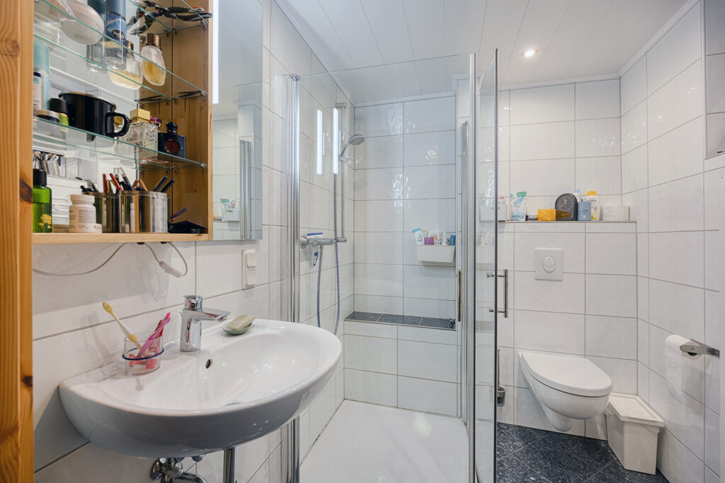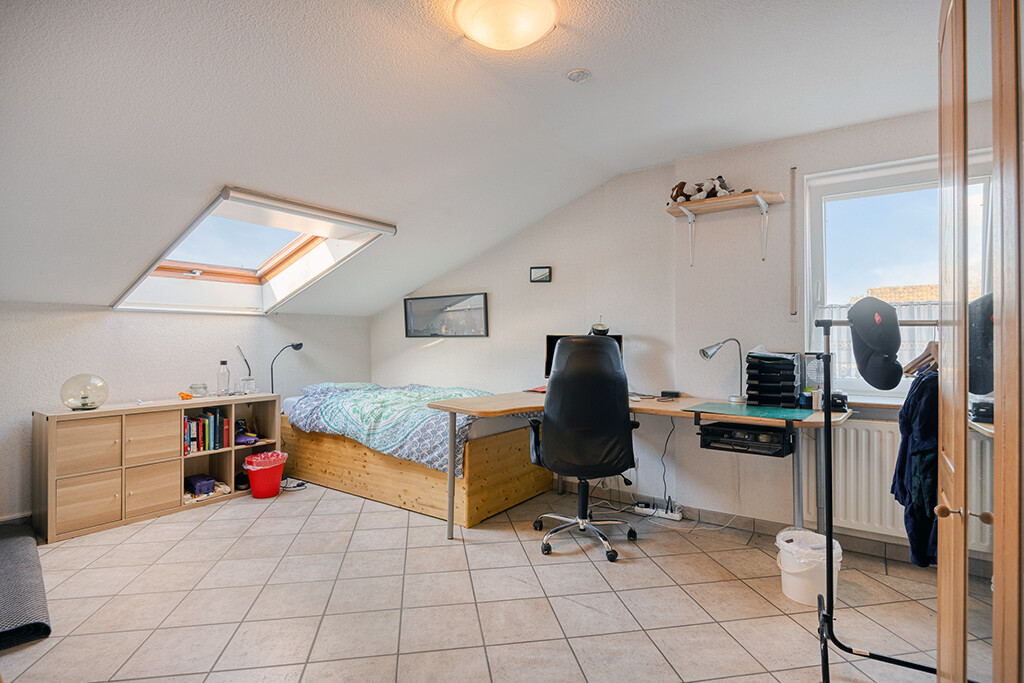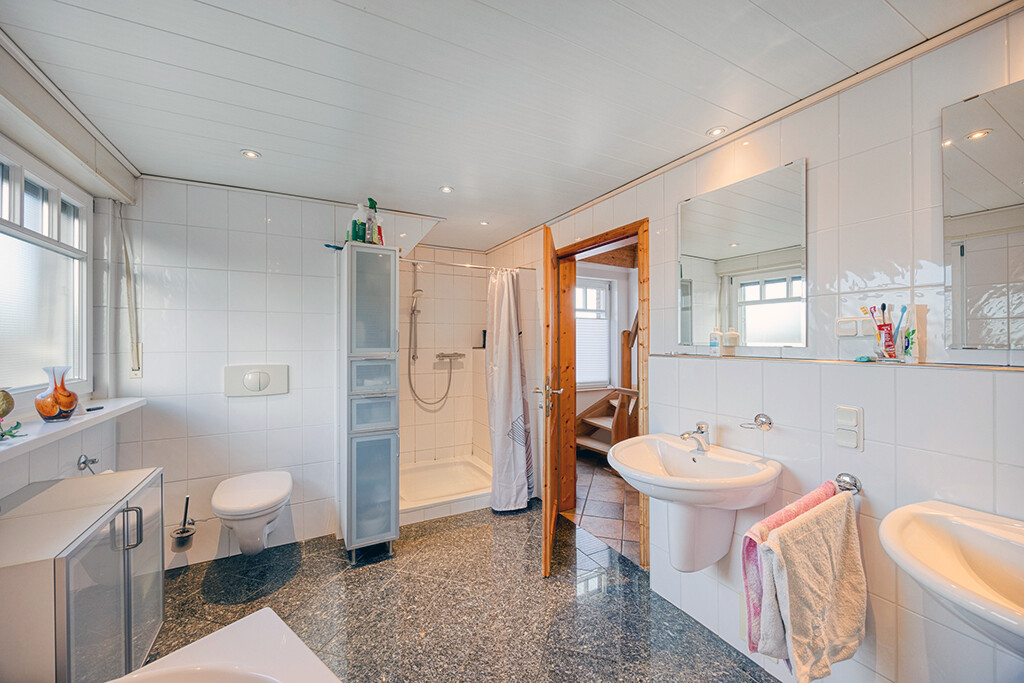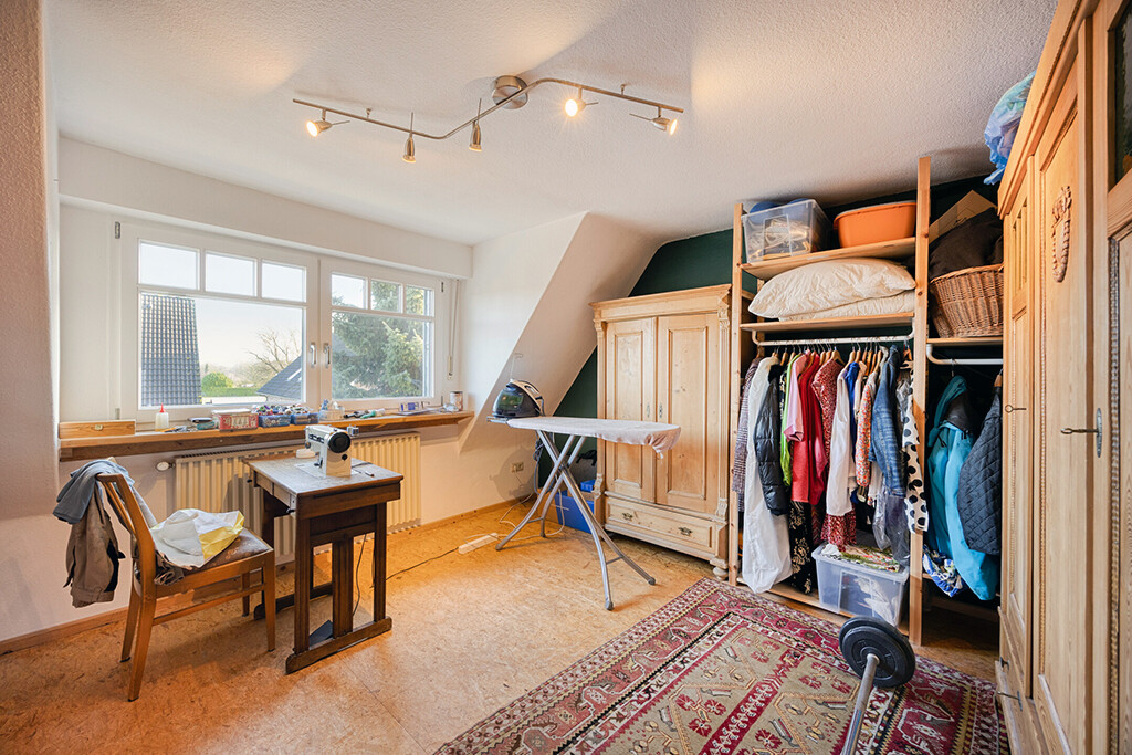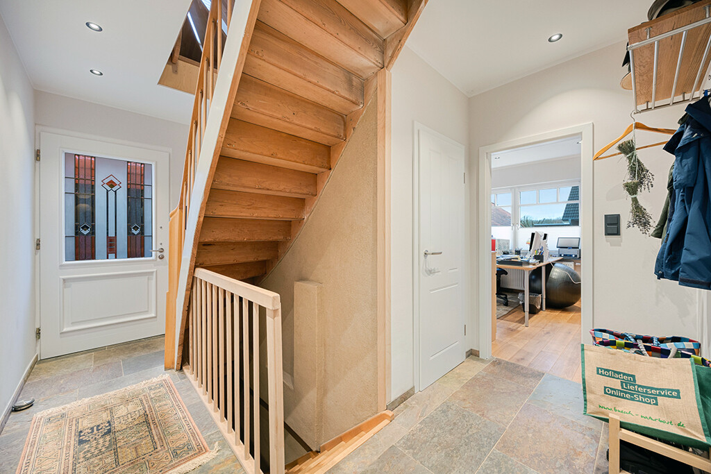 Darüber hinaus wurde in dem über eine fest installierte Holztreppe begehbaren Spitzboden ein weiterer Raum mit ca. 30 m² Nutzfläche geschaffen.