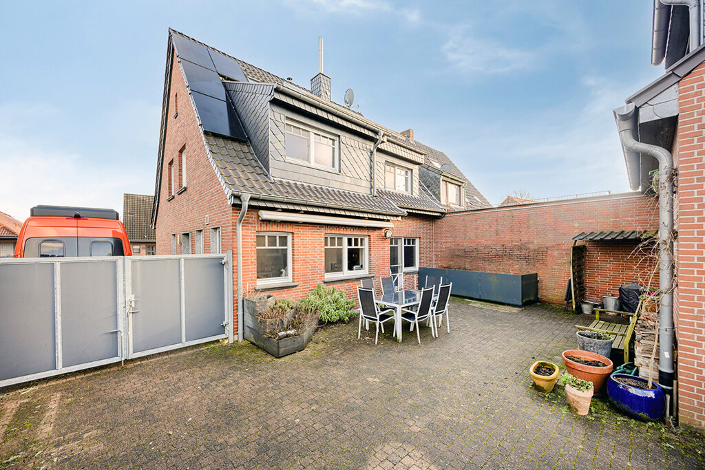 Der Grundbesitz ist herrlich nach Westen ausgerichtet, sodass ausreichend Sonnenstunden im eigenen Garten sowie Helligkeit im Inneren garantiert sind.Der Ortskern von Wemb ist fußläufig erreichbar. Wird ein größeres Angebot gewünscht, sind die Zentren der Gemeinde Weeze bzw. der Stadt Kevelaer nicht weit entfernt.