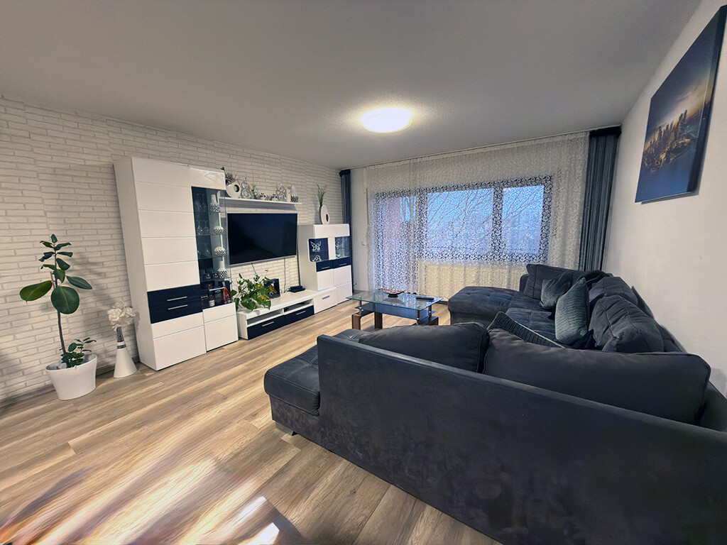 Wohn- und Esszimmer (mit Loggiazugang), Elternschlafzimmer, Kinderzimmer I, Kinderzimmer II (respektive Büro bzw. Gästezimmer), Küche, Diele / Garderobe, Bad (mit Wanne, Waschtisch und WC), Gäste-WC