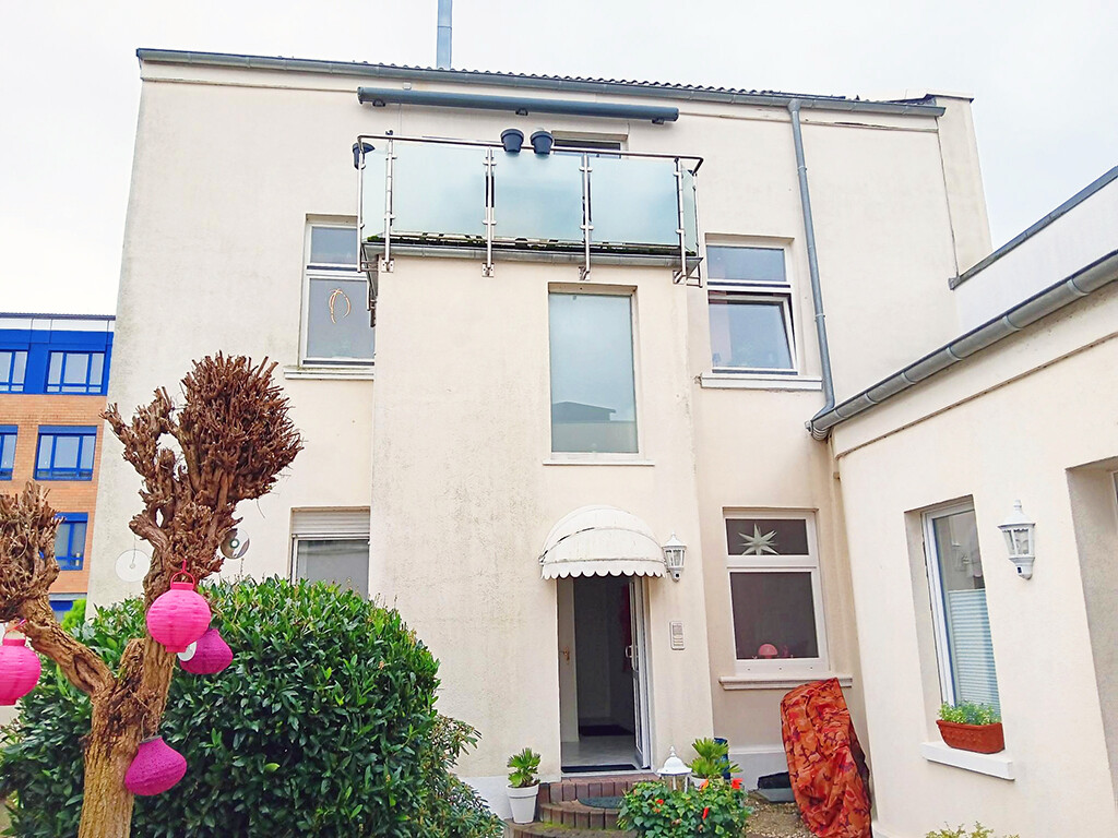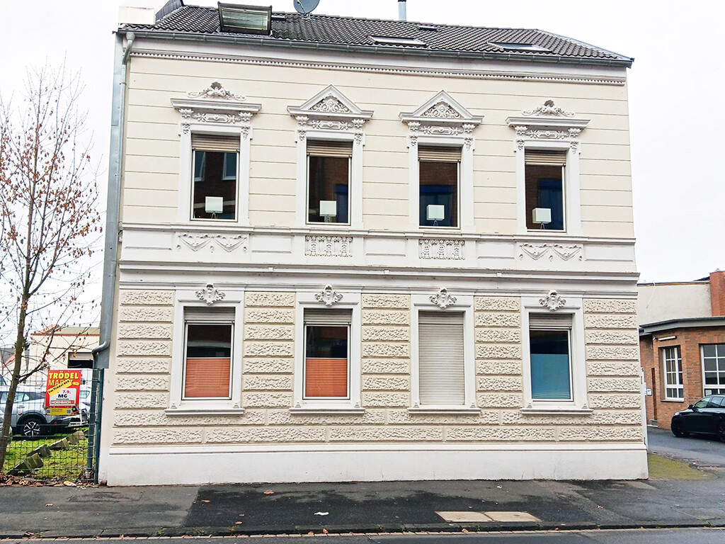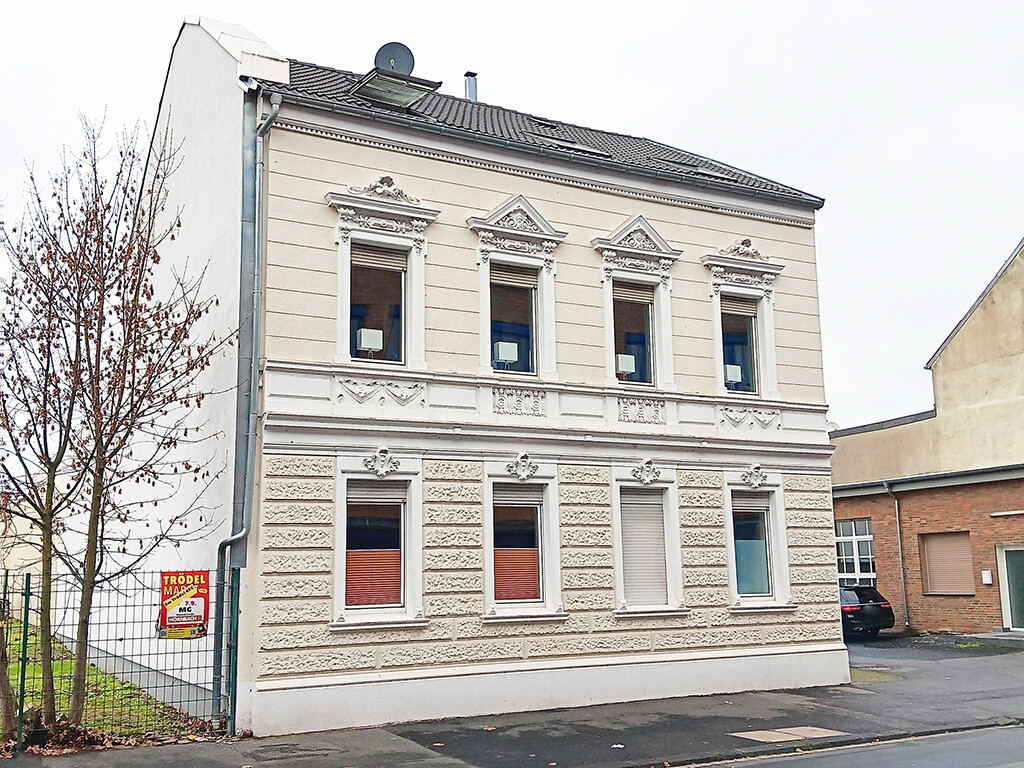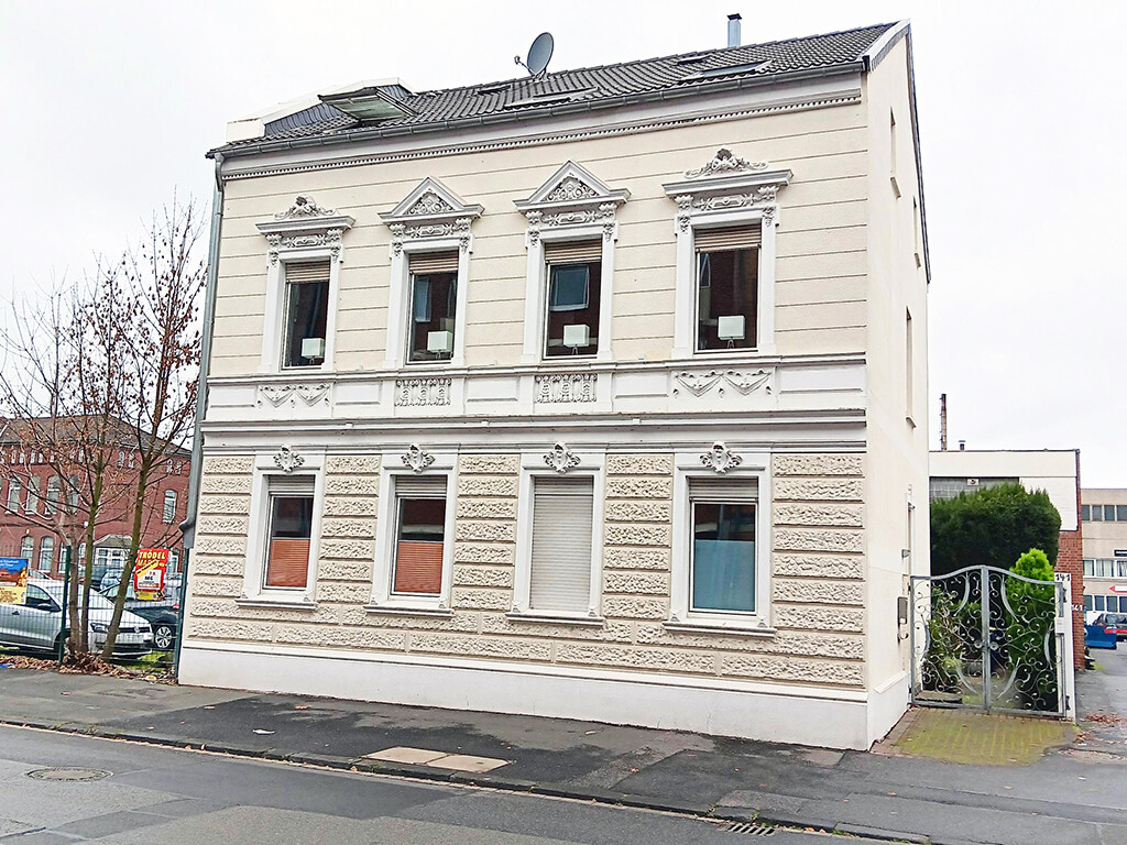 Im Obergeschoss eines um 1912 auf einem ca. 925 m² großen Grundstück erbauten Dreifamilienhauses mit historischer Fassade und angrenzenden Büroräumen (sowie kleiner Lagerhalle) bieten wir Ihnen diese gut geschnittene Eigentumswohnung mit Balkon (Zugang vom Treppenhaus aus) zum Kauf an.