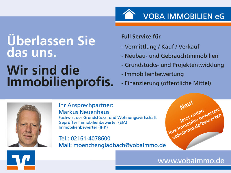 Der Mönchengladbacher Ortsteil Eicken erfreut sich seit jeher großer Beliebtheit. In der Fußgängerzone (mit zahlreichen denkmalgeschützten Gebäuden) bzw. in unmittelbarer Nähe finden Sie diverse Einrichtungen des täglichen Bedarfs.