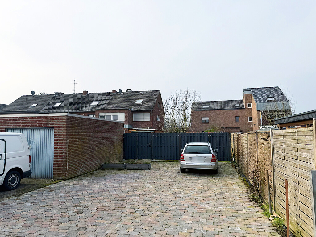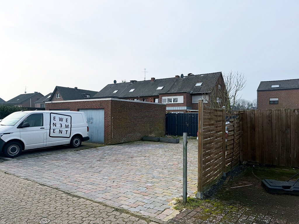 Der Grundbesitz ist rückwärtig erreichbar; neben der Garage stehen hier noch zwei weitere, hauseigene Stellplätze zur Verfügung.