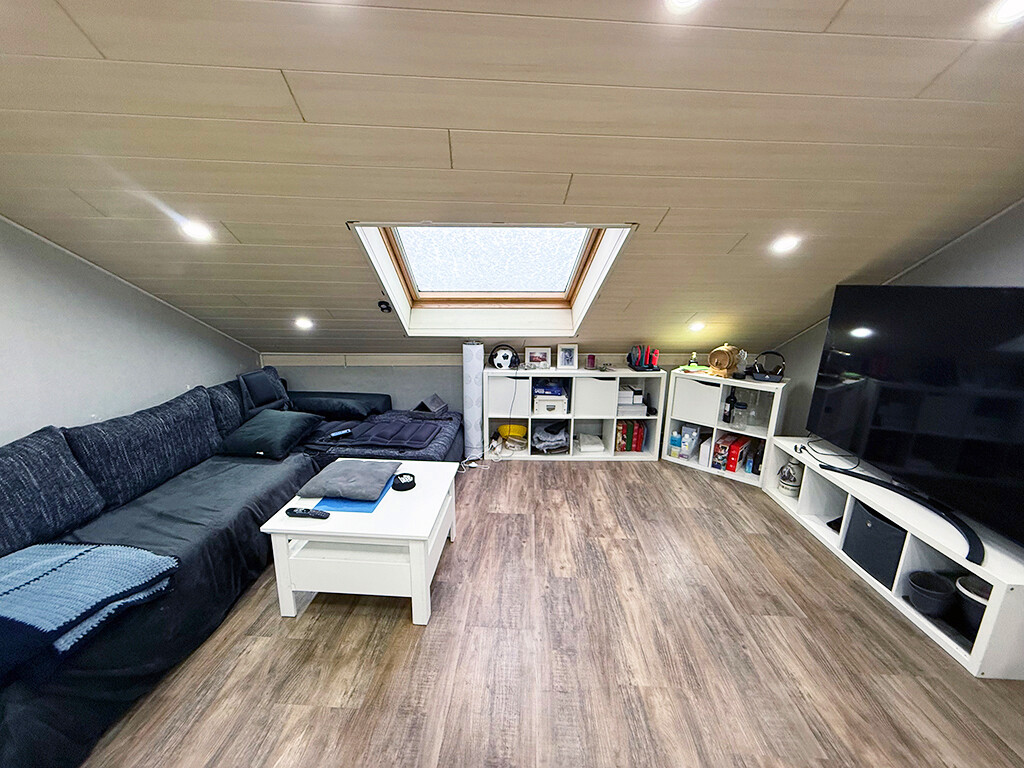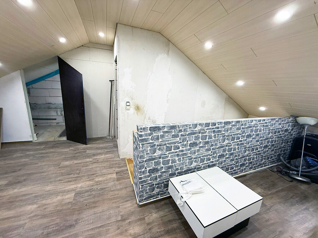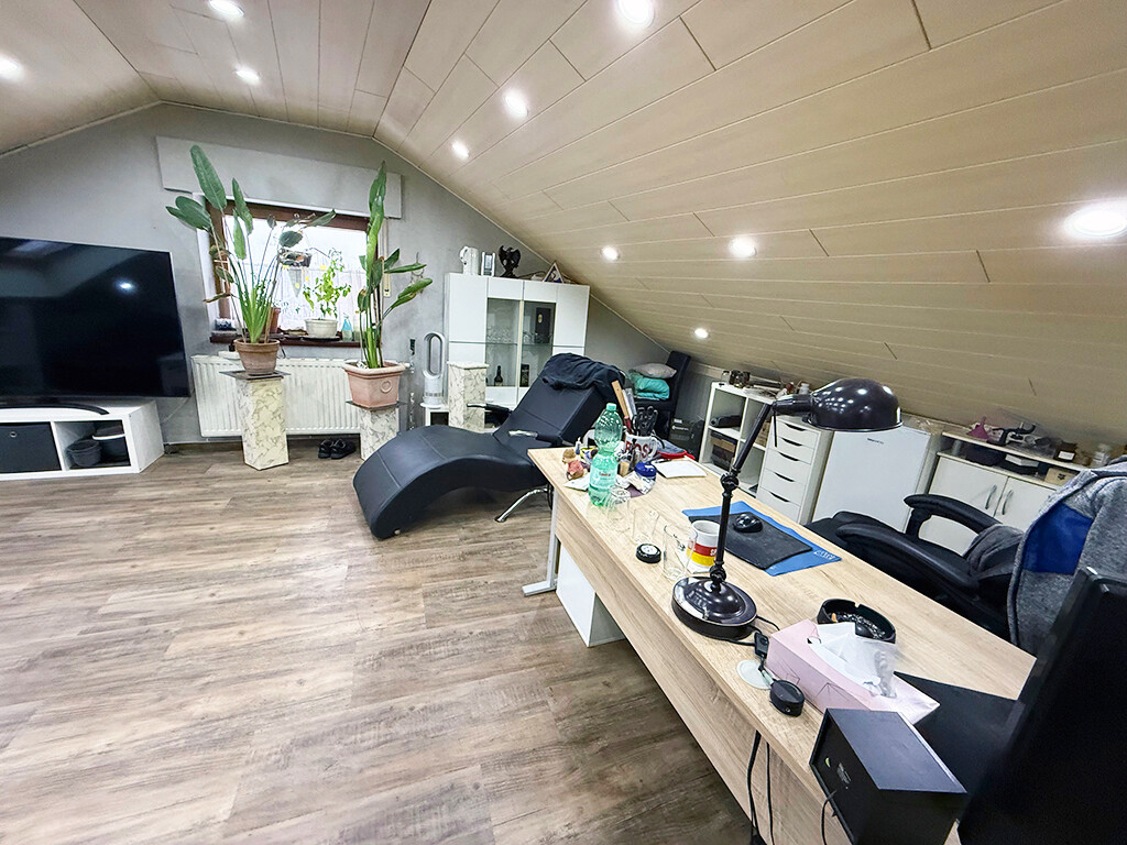 Dachgeschoss (= Nutzfläche): Individueller Nutzraum, Heizungsraum, Bad im Rohbau