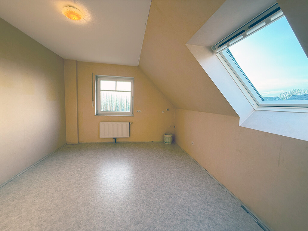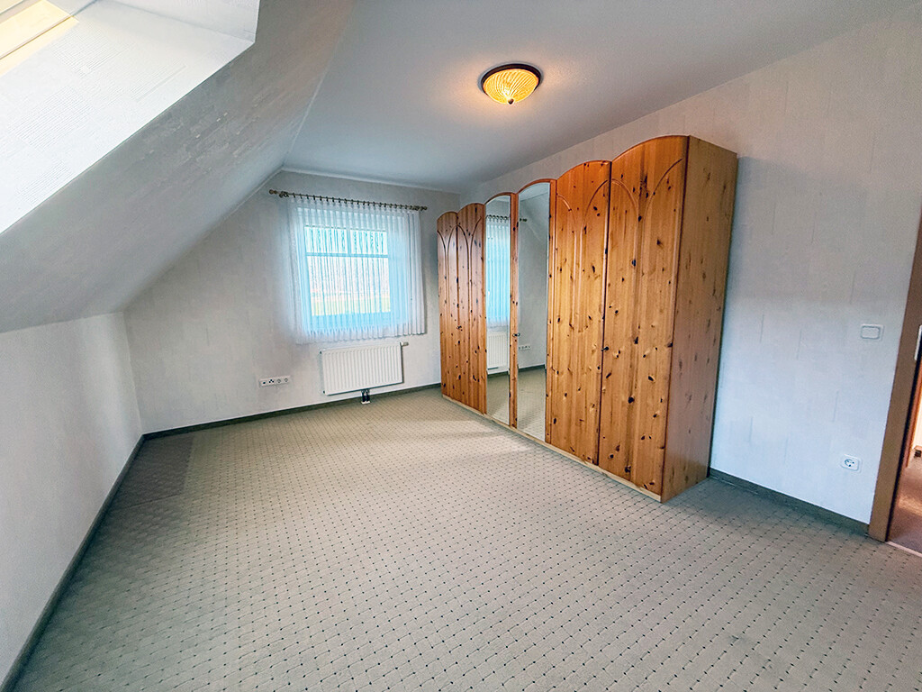 Die Räumlichkeiten im Dachgeschoss habne eine angenehme Größe und fügen sich nahtlos in das helle, freundliche Gesamtbild ein. Platz für individuelle Gestaltung ist vorhanden. So bietet sich z. B. die Umgestaltung des heutigen Wäschezimmers in ein weiteres Schlafzimmer an.