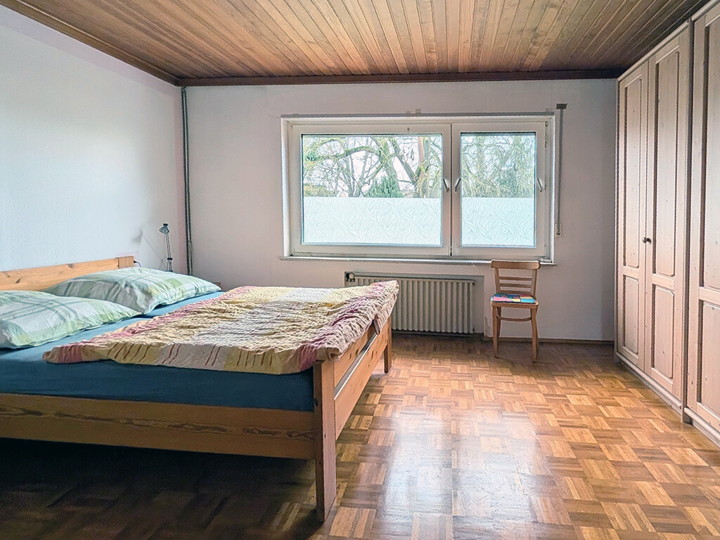 Das Obergeschoss verfügt über zwei gut geschnittene Schlafzimmer, einen Flur sowie ein Tageslichtbad mit Badewanne.