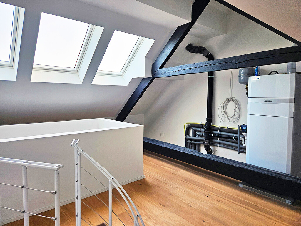 Diese interessante Eigentumswohnung, die den Charakter eines Reihenhauses hat, ist Teil einer historischen Vierkanthofanlage.