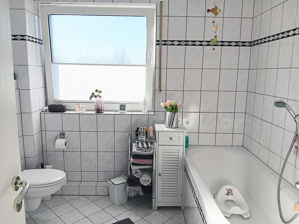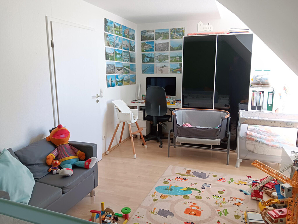Das sukzessive renovierte Eigentum mit ca. 110 m² gut aufgeteilter Wohnfläche (ohne anteilige Terrassenfläche) bietet einer jungen Familie mit fünf Zimmern, Küche, Diele, Gäste-WC sowie zwei Bädern (im Dach- und Kellergeschoss) ausreichend Platz zur individuellen Entfaltung.