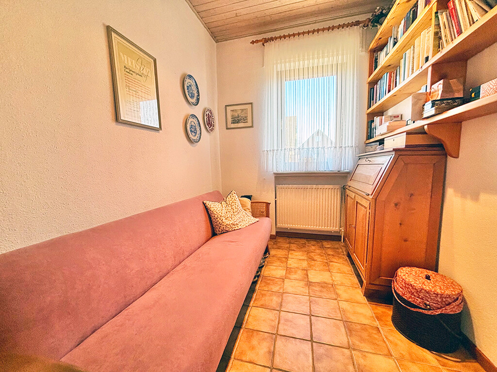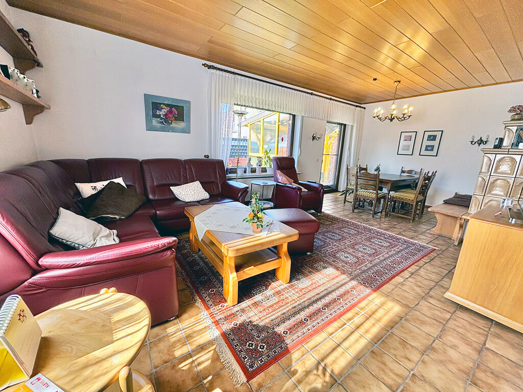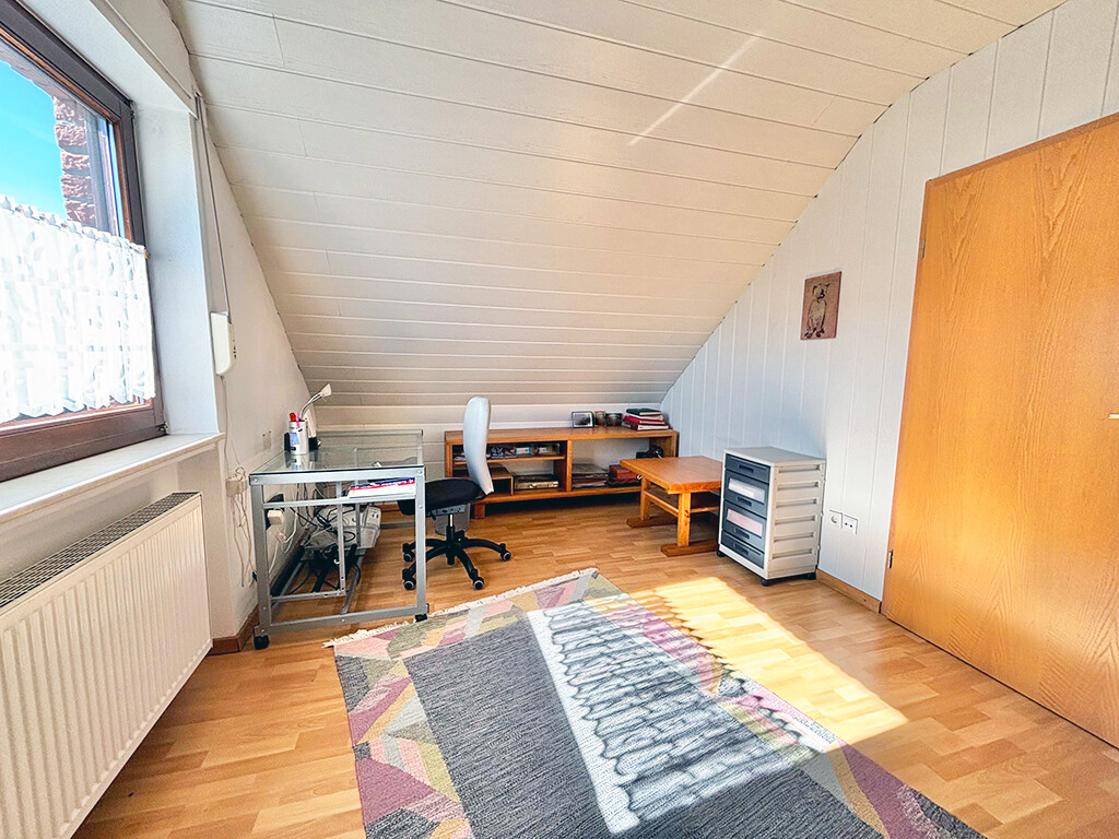Erdgeschoss: Wohn- und Esszimmer (mit Kachelofen und Terrassenzugang), Büro, Küche (ebenfalls mit Terrassenzugang), Diele, Gäste-WC