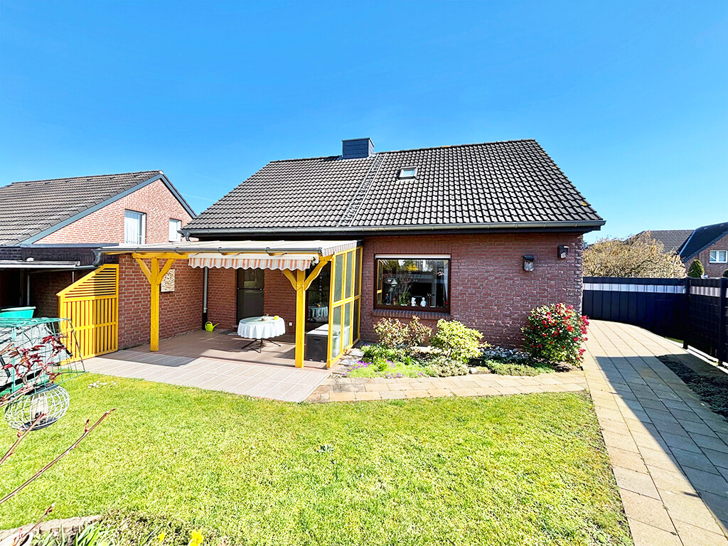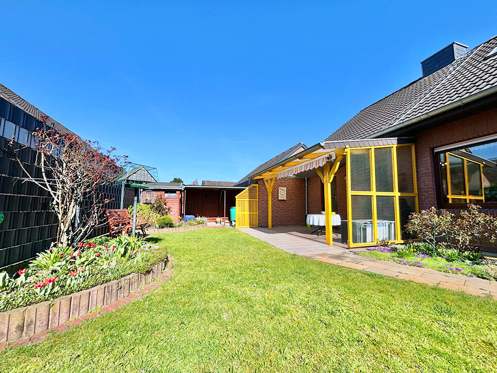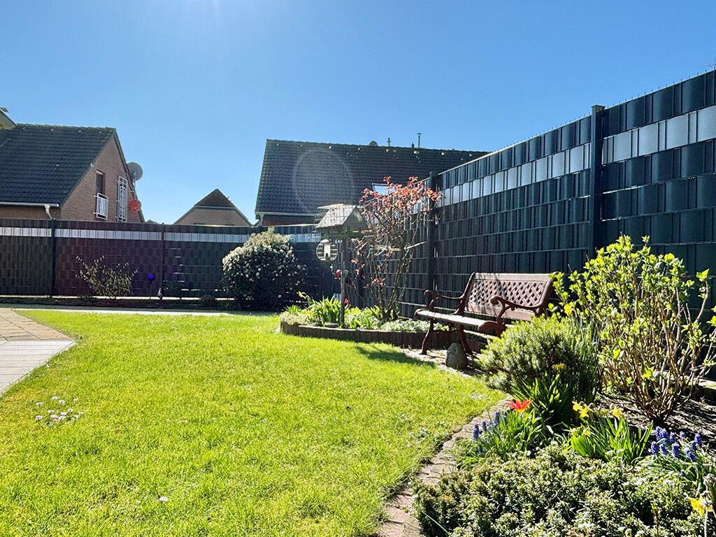 Der liebevoll angelegte Garten bietet die nötige Privatsphäre und Ruhe. Die Terrassenüberdachung, der Geräteschuppen sowie der rückwärtige Zugang in die Garage, die mit einem elektrischen Garagentor versehen ist, runden die allgemein gepflegte Immobilie ab.