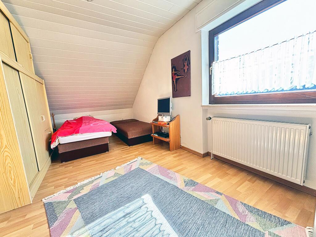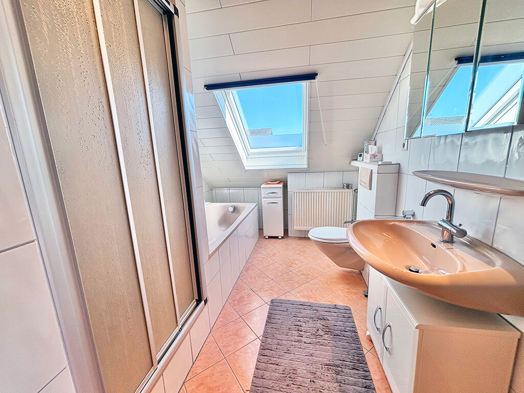 Dachgeschoss: Elternschlafzimmer, Kinderzimmer, Flur, Bad (mit Wanne und Dusche)