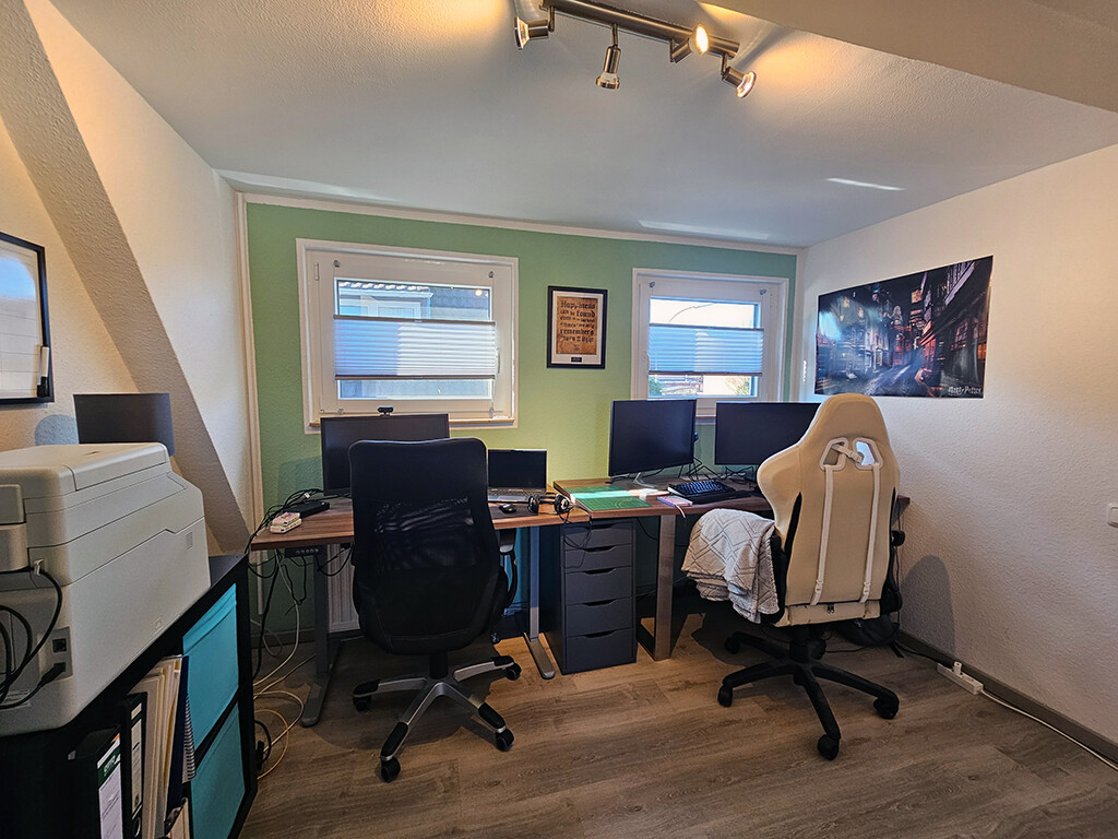 Dachgeschoss: Elternschlafzimmer, Kinderzimmer (respektive Büro), Flur, Bad