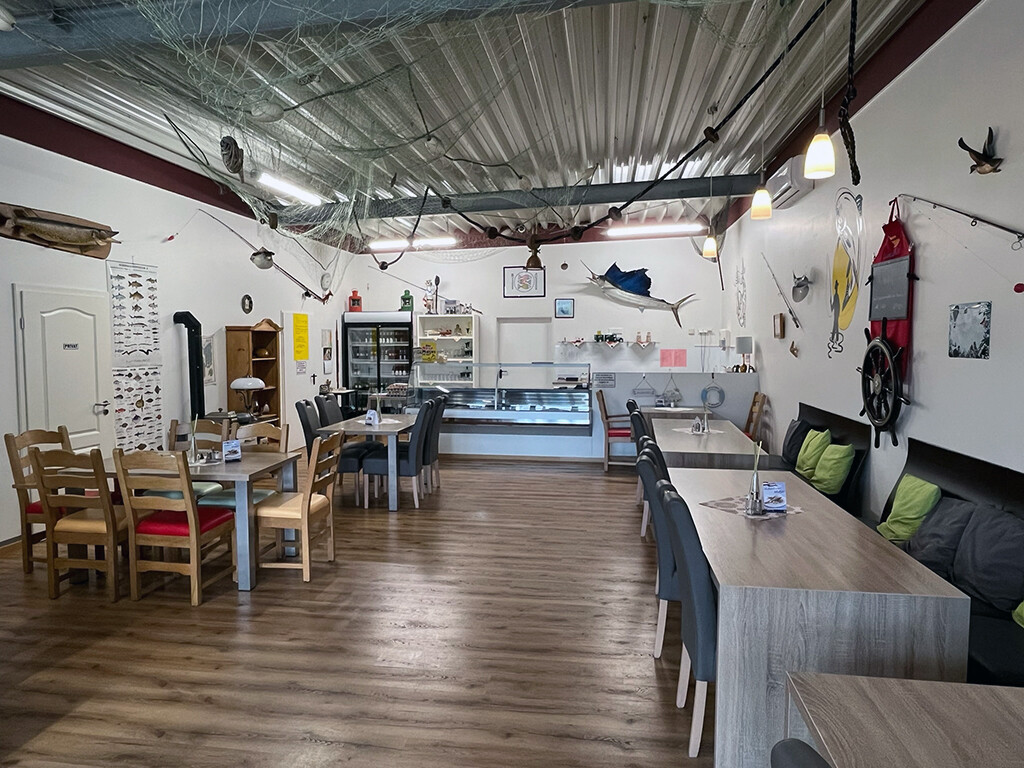 Aufteilung: Restaurant (Verkaufsraum), warme Küche, kalte Küche, Mitarbeiterküche (Aufenthaltsraum), Produktionsraum, Büro, Herren-WC, Damen-WC, Mitarbeiter-WC, Heizungsraum, Räucherei mit Gefrier- und Kühlhaus, Lager, große Halle