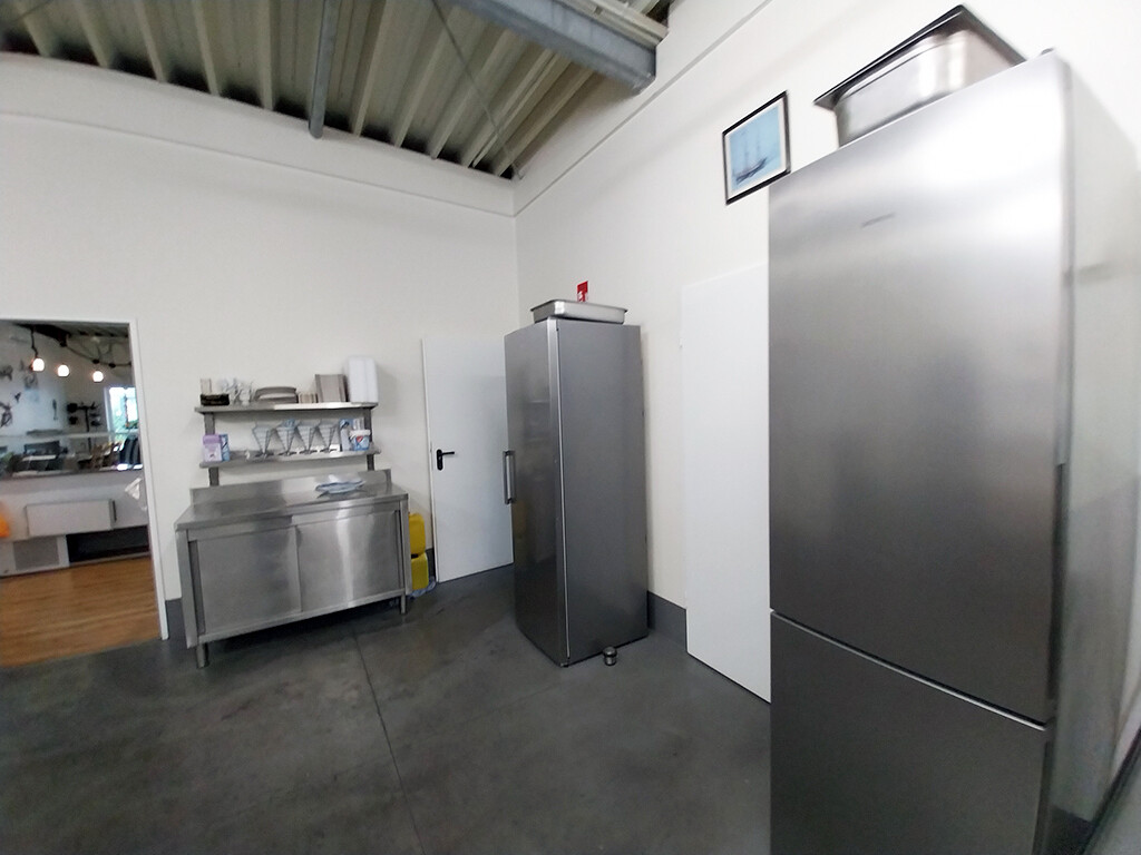 Aktuell wird das Gebäude für einen Gastronomiebetrieb und als Produktionsfläche genutzt. Bei dem Bau der Halle wurde aber schon auf eine vielfältige Nutzungsmöglichkeit geachtet. Es sind ausreichend Toiletten und Räume vorhanden. Eine andere Aufteilung ist mit wenig Aufwand umzusetzen.