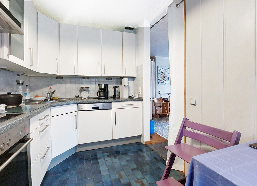 Wohnungen rechts: Wohn- und Esszimmer, Küche, Diele, Bad, Abstellraum, Elternschlafzimmer, Kinderzimmer (respektive Büro) und Balkon