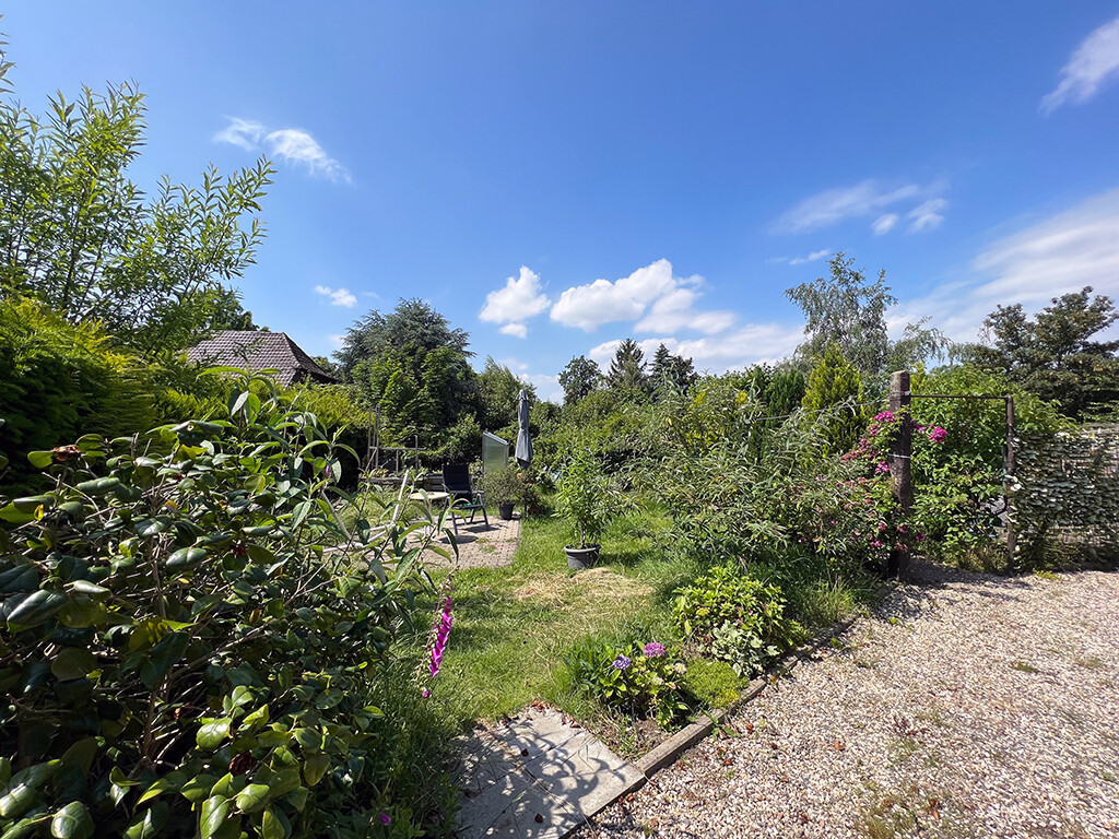 Das ca. 668 m² große Grundstück ist nach Süd-West ausgerichtet. Zwei Garagen, mehrere Kfz-Stellmöglichkeiten sowie Sitzgelegenheiten runden das Außenangebot perfekt ab.