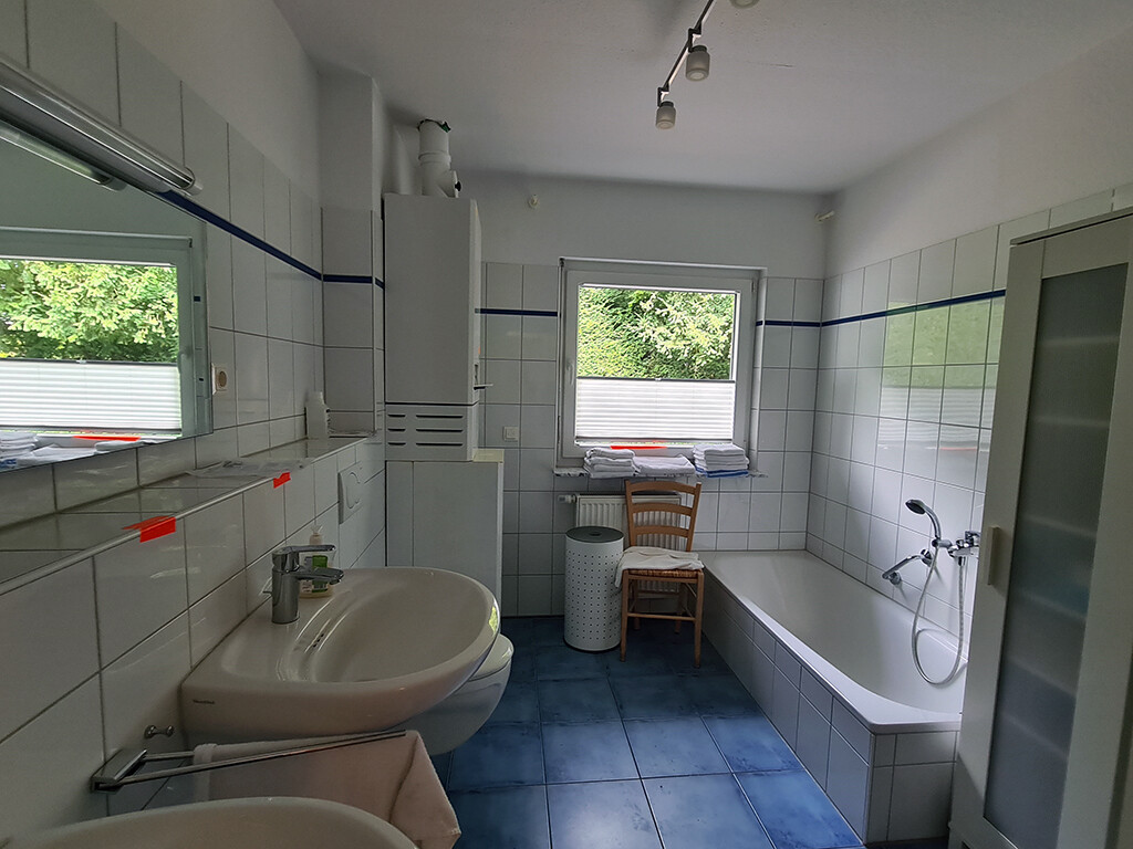 Die Ausstattung entspricht dem jungen Baujahr und den allgemein geäußerten Wunschvorstellungen von Kaufinteressenten. Die Oberböden sind mit Fliesen, Vinyl oder Laminat belegt. Die Kunststofffenster mit Isolierverglasung verfügen im Wesentlichen über Rollläden. Für jede Etage ist eine Gasetagenheizung vorhanden.