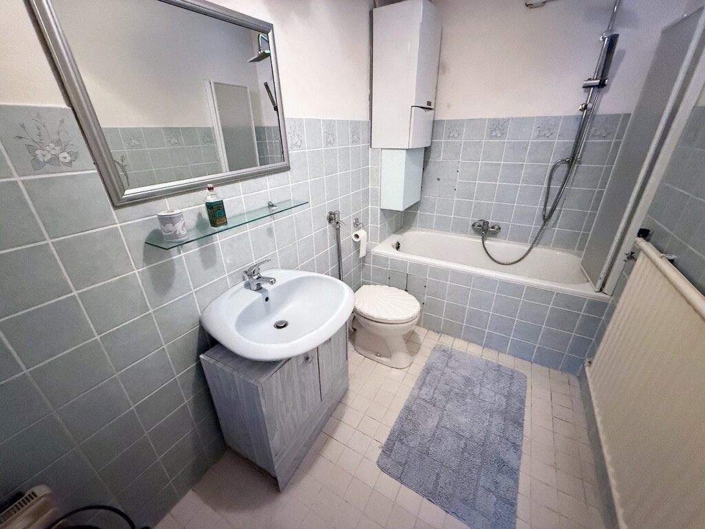 Wohneinheit I (Erdgeschoss): Wohn- und Esszimmer, Schlafzimmer, Küche, Diele, Bad (mit Wanne und Dusche), Gäste-WC