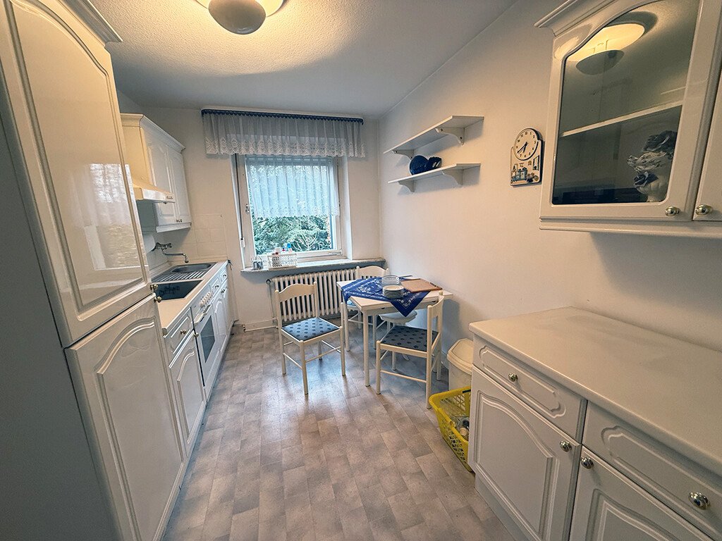 Wohneinheit II (Obergeschoss): Wohn- und Esszimmer, Schlafzimmer, Kinderzimmer I (Durchgangszimmer), Kinderzimmer II (respektive Büro), Küche, Diele, Bad (mit Wanne)