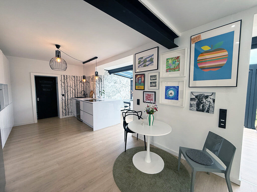 Die vielen Fenster sowie ein wintergartenähnliche Terrassenanbau sorgen für reichlich Lichteinfall und ein helles Gesamtbild. Im Zuge der Umbauarbeiten wurden Holzfenster mit Isolierverglasung eingebaut und die Elektroinstallation überarbeitet. 2022 folgten die beiden Bäder.