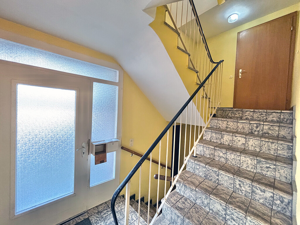 Die Immobilie wurde um 1966 in unterkellerter Massivbauweise auf einem ca. 989 m² (!) großen Grundstück errichtet. Die gelungene Raumaufteilung mit vielen Fenstern bietet die Möglichkeit, modernen Wohnraum zu schaffen. Das vorgelagerte Treppenhaus führt in den Keller sowie in einen weiteren Wirtschaftsraum, der mit einer Toilette ausgestattet ist. Von dort aus gelangt man in eine der fünf Garagen sowie in den großzügigen Garten.
