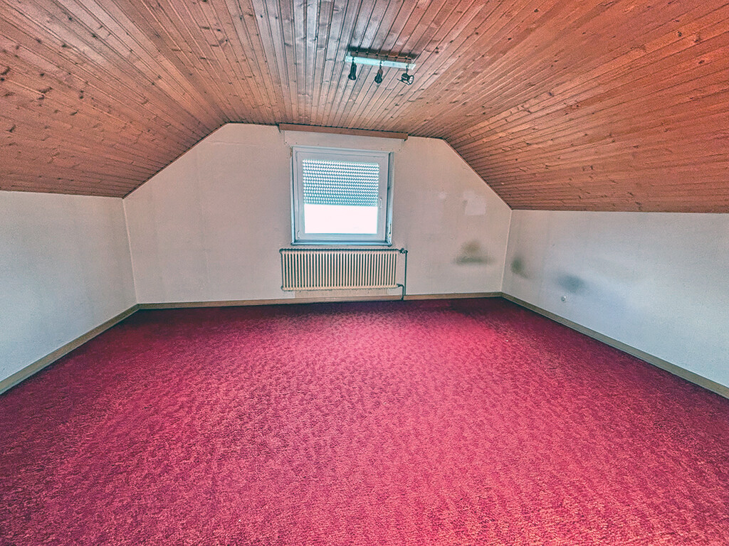 Der Dachboden über der Doppelgarage, der zurzeit als Abstellfläche dient, sowie der Haus-Dachboden sind über das Treppenhaus begehbar. Hier befinden sich wohnraumähnlich ausgebaute Nutzräume.