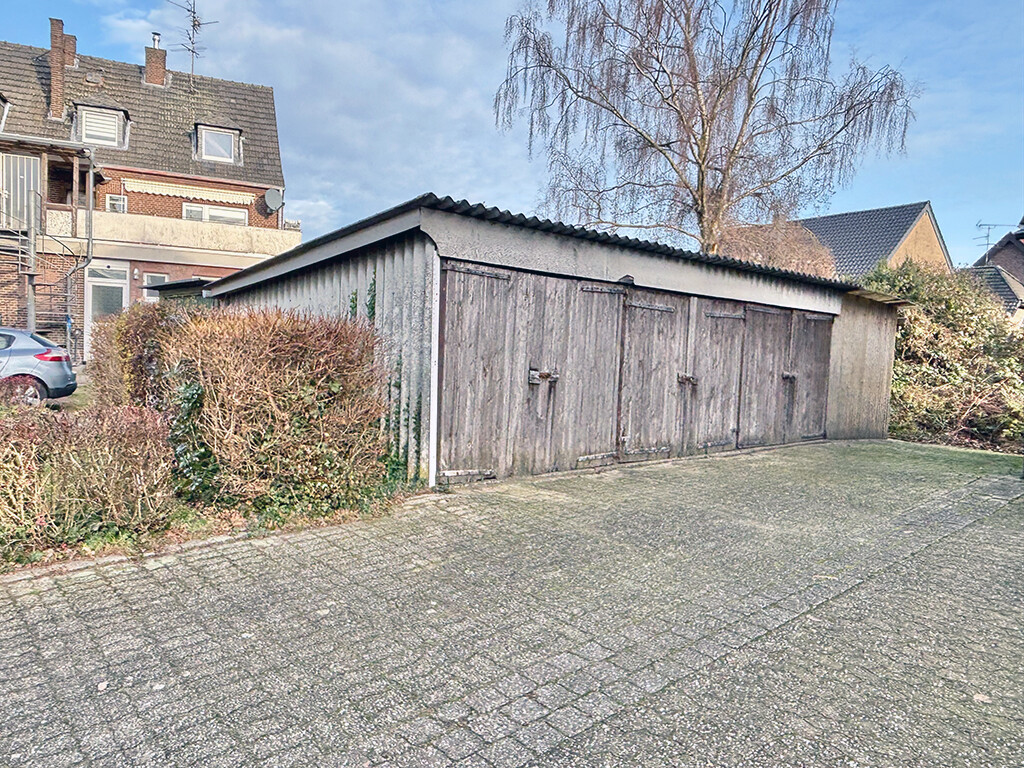 Neben zwei massiven Garagen, wovon eine über das Treppenhaus zu erreichen ist, befinden sich noch drei weitere Garagen in Holzrahmenbauweise auf dem Grundstück.