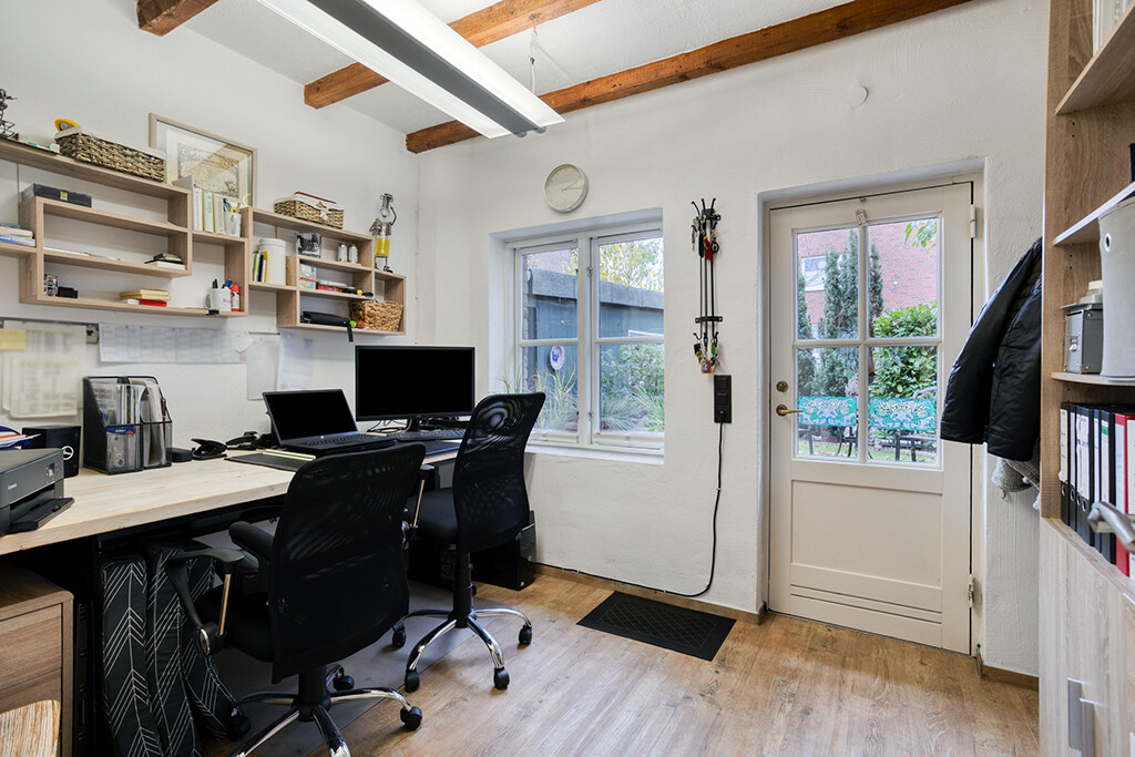 Erdgeschoss: Wohnzimmer (mit Kamin und Sommergartenzugang), Büro, Küche (mit Essbereich), Diele / Flur, Bad, Hauswirtschaftsraum